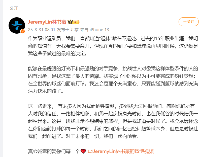 8月31日,杰里米·林(Jeremy Lin)发表声明,表示退休:作为职业运动员,我们始终知道“退休”并不遥远。我清楚地知道有一天我需要离开,但是现在是时候对篮球说再见了,这仍然是我一生中做出的最困难的决定。在耀眼的光线下与最强大的对手竞争,挑战像我这样的身体状况的人们的自然印象是我一生中最大的荣誉。我意识到自己的疯狂梦想,我认为我年轻时就无法实现:在世界各地的粉丝面前玩耍。我仍然是一个小男孩,只要我能处理篮球,我就会感到兴奋和喜悦。同时,许多人牺牲了卡尼特(Kaniit)只是致力于我,我无法付钱。感谢大家对我的信任,与我在一起,庆祝我的亮点,并在我进入槽时与我站在一起。这是一个TR我真的不想完成的IP,但我知道是时候了。我总是想念在您面前打球的每一刻,我们之间的回忆超越了篮球,但是现在是时候让我们一起前进了。让所有人希望将来为每个人提供希望。我爱你们每个人。负责编辑:谭周(Tan Zhou)在发表讲话时请按照新闻答复服务协议